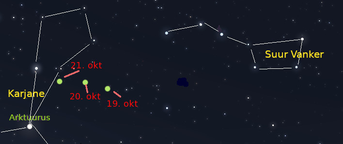 Komeeti Lemmon võib vaadelda ka hommikuti kirdetaevas, siis on ka Arktuurus uuesti tõusnud; ka Suure Vankri aisatähed sihivad 21. oktoobri hommikul allapoole, komeedi suunas.