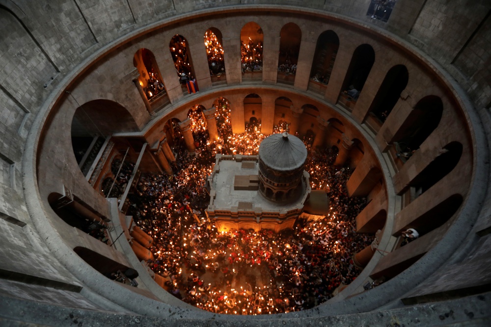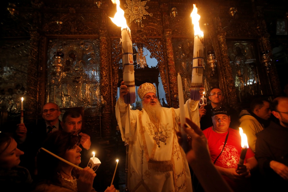 Fotogalerii (Scanpix): püha tule tseremoonia Jeruusalemma hauakirikus (fotod 1–3), ülestõusmispüha Vatikanis (4–5), kopti paavst Tawadros III (6), öine jumalateenistus Moskva Lunastaja Kristuse kirikus (7–8), preester Kiievi Petšerski suurkloostris (9).