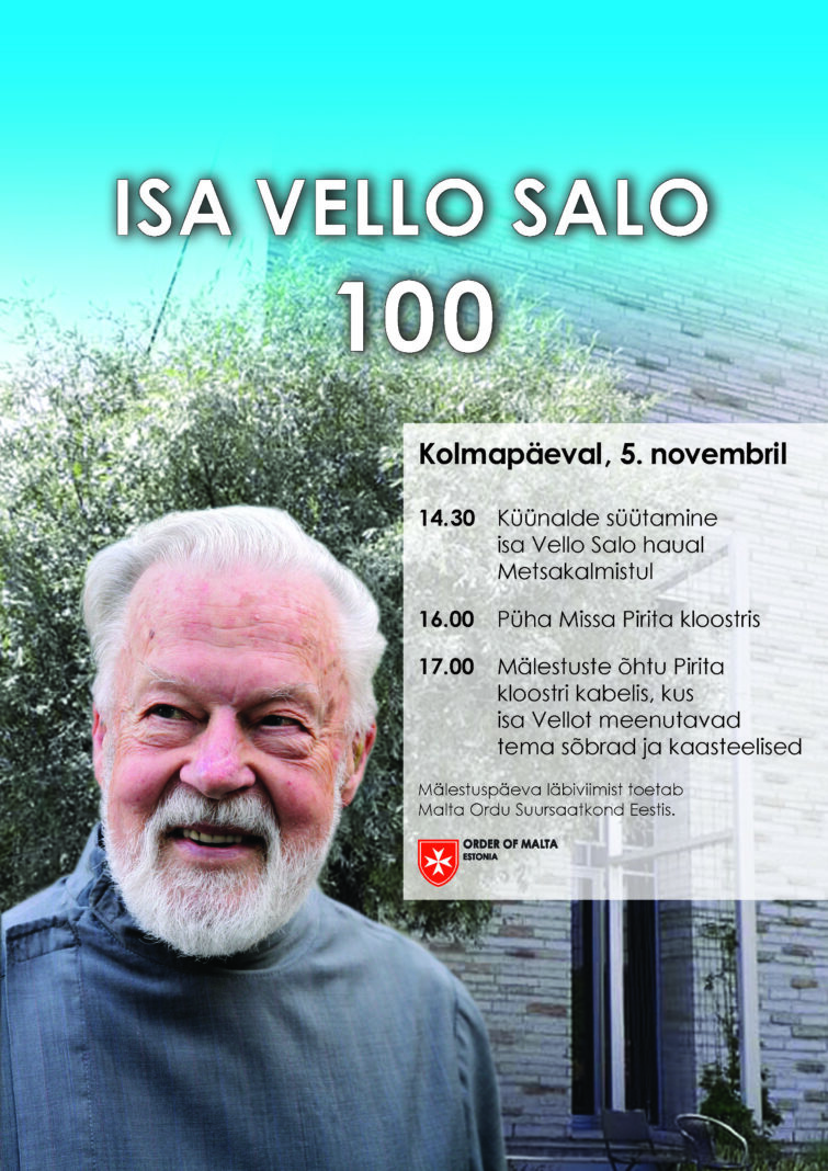 Rooma-Katoliku Kiriku Tallinna Piiskopkond tähistab 5. novembril Pirita kloostris katoliku preestri, tõlkija, teoloogi ning Eesti kultuuri ja vaimuelu eestkõneleja isa Vello Salo 100. sünniaastapäeva.
