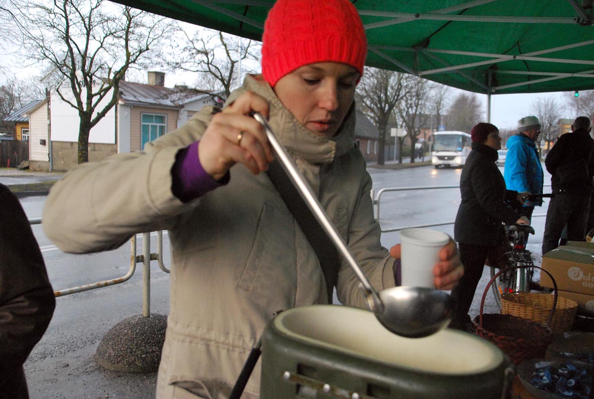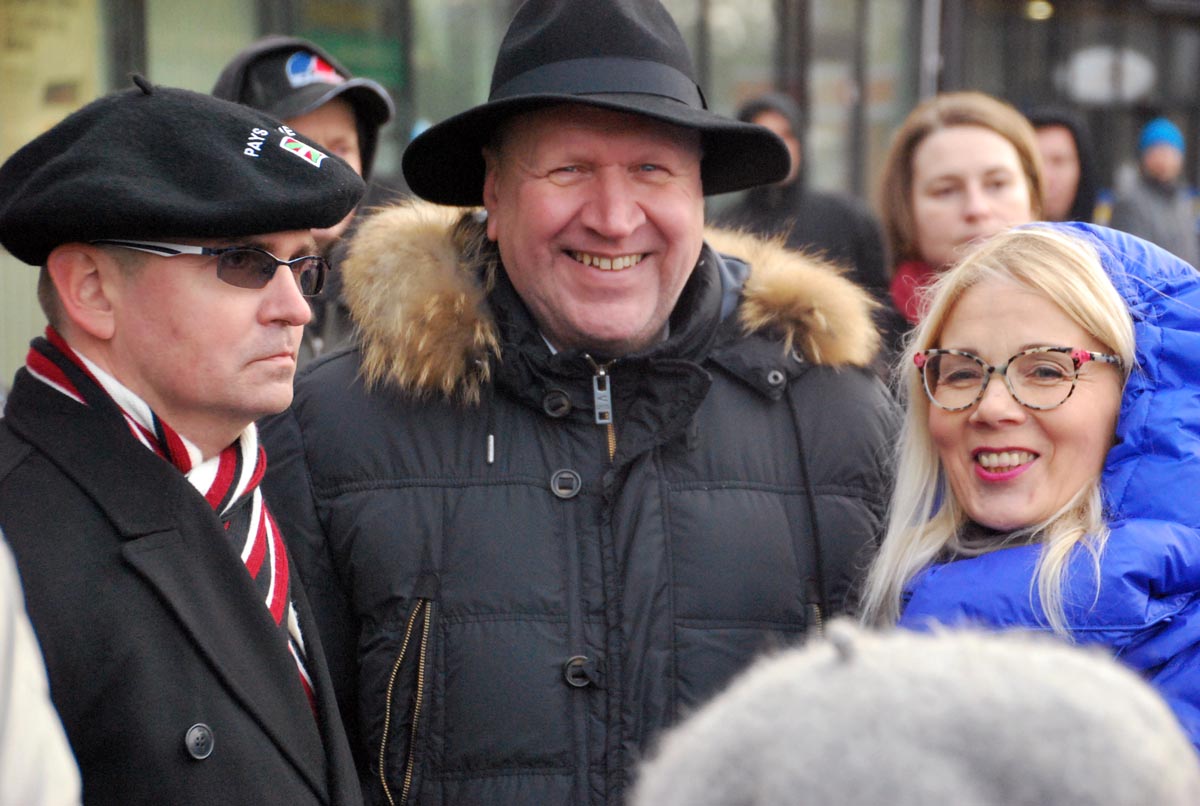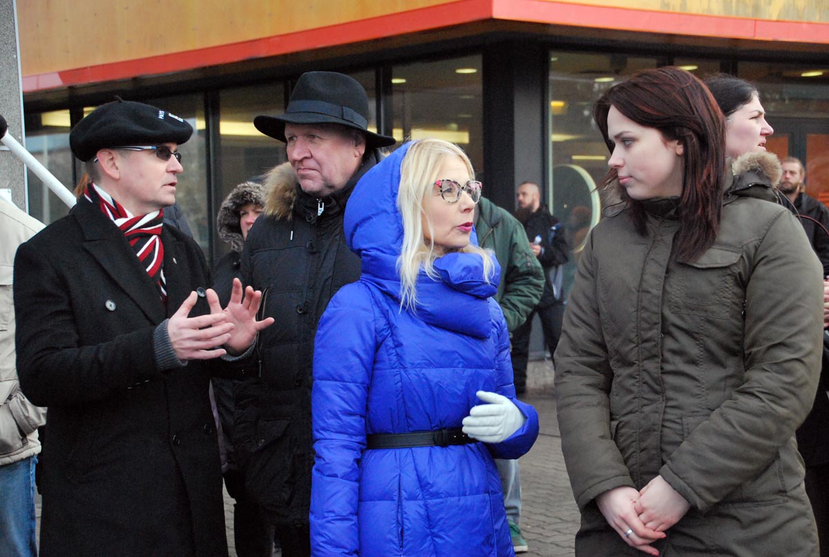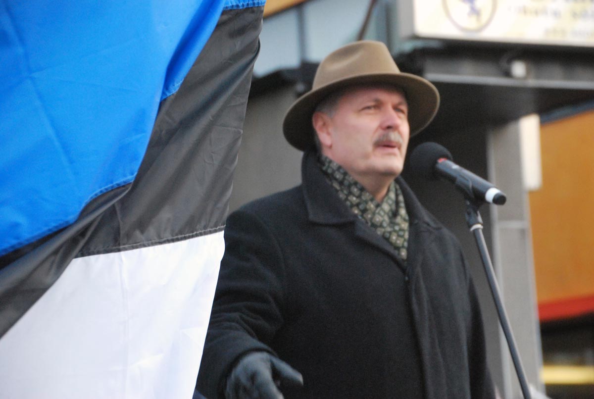 Pool tundi enne algust lehvisid sinimustvalgetes värvides lipud. Veerand tundi hiljem tulid tänavanurgale seisma kuus meest kahe punalipuga, mille keskel valge sõõr ja eestlaste rehielamute katuse otstel nähtud tagasihoidlik kaunistus. Vähese jutuga mehed selgitasid, et üldiselt nad ei poolda mitmel põhjusel EKRE tegemisi, aga tulid siiski seekordset meeleavaldust toetama. Enne päris ametlikku algust läks EKRE aseesimees Anti Poolamets meestega vestlema ja seejärel keriti lipud kokku.