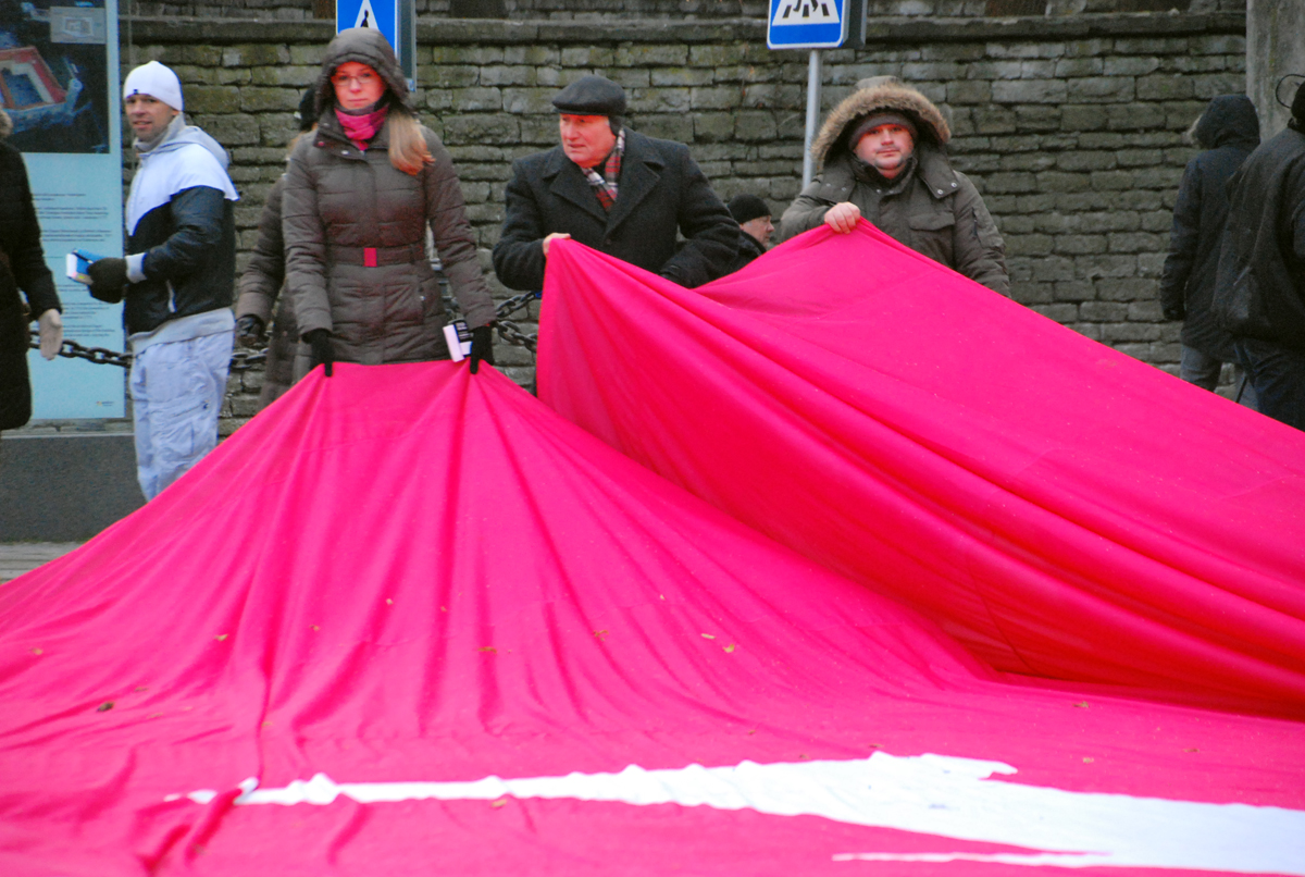 Jätsin nad rahumeelselt, kuid tulutult jändama, sest vaadata, kuulata ja kaasa mõelda oli märksa rohkem kui üksnes kogu tähelepanu ainult ühele seigale pühendada. Et Lossi platsile jõudsin üsna lõpuminutitel, siis otsustasin vaadata ka Vabaduse väljakul toimuvat. Sama kangas rulliti Vabadussõja mälestusmärgi ees avarale platsile laiali. Seal ei püsinud kangas nii rahulikult, kui Toompeal ja tuuleiilid üritasid suurt "purjepinda" maast lahti kergitada. Kuid abiliste tugeva käterammu vastu tuulel jaksu ei jätkunud.