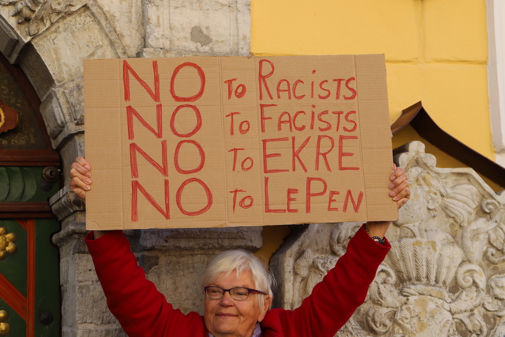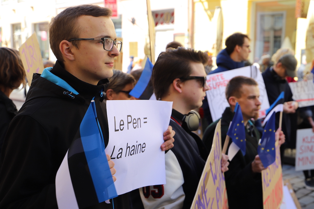 EKRE on Le Peni arvates tuleviku erakond. "Elagu EKRE, elagu Eesti, elagu rahvaste Euroopa!" Ja ta lisab: tundub, et EKRE on ainus, kes Eestis seisab vabaduse eest.