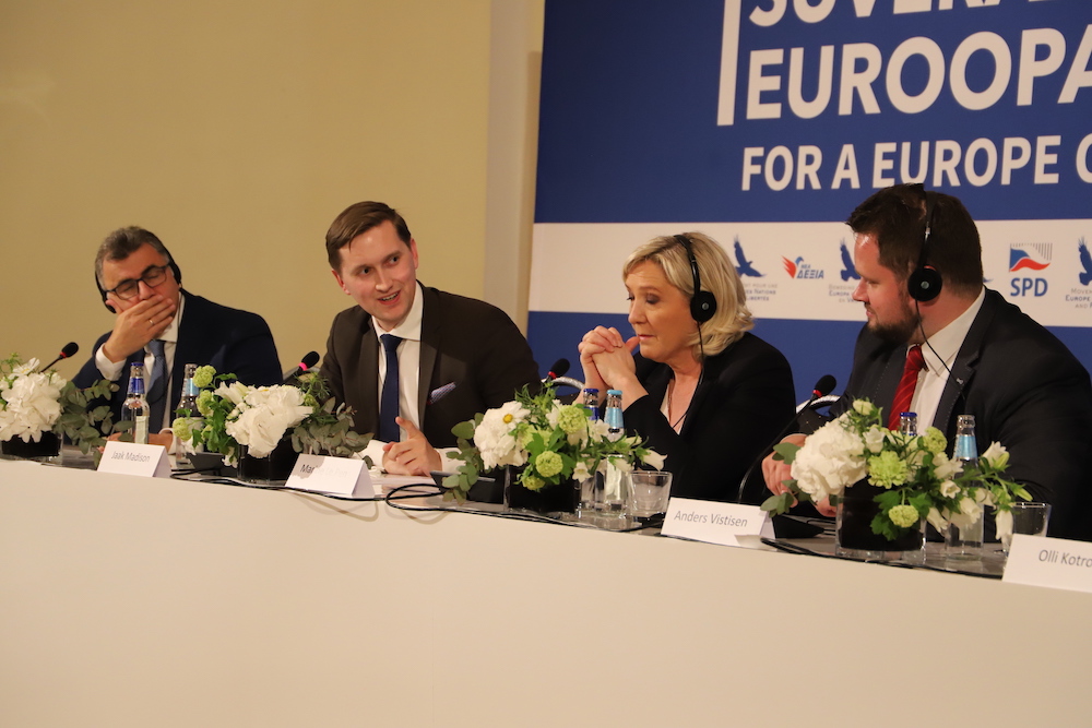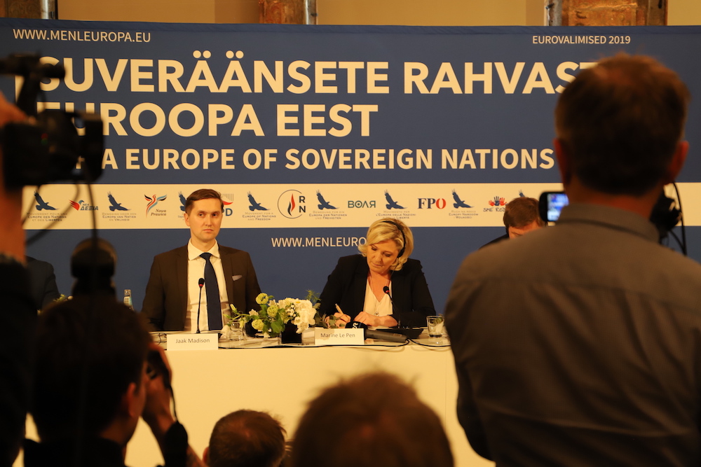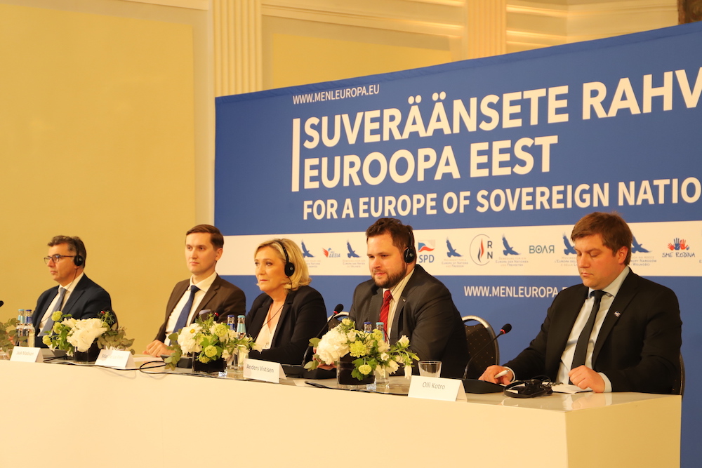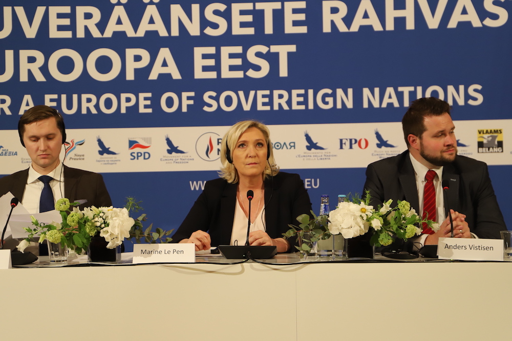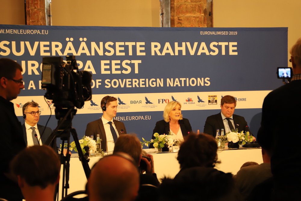 Pressikonverentsile eelnenud kõnekoosolekul sealsamas Mustpeade majas vastas Marine Le Pen EKRE liikme Georg Kirsbergi küsimusele, kas Venemaa küsimuses oleks Euroopa rahvuslastel võimalik jõuda ühtsele arusaamale, et meie ajalugu on erinev ja riigid ajavad suveräänset poliitikat. Le Pen selgitas, et näiteks Itaalia ja Prantsusmaa jaoks on põhiliseks ohuks islam.