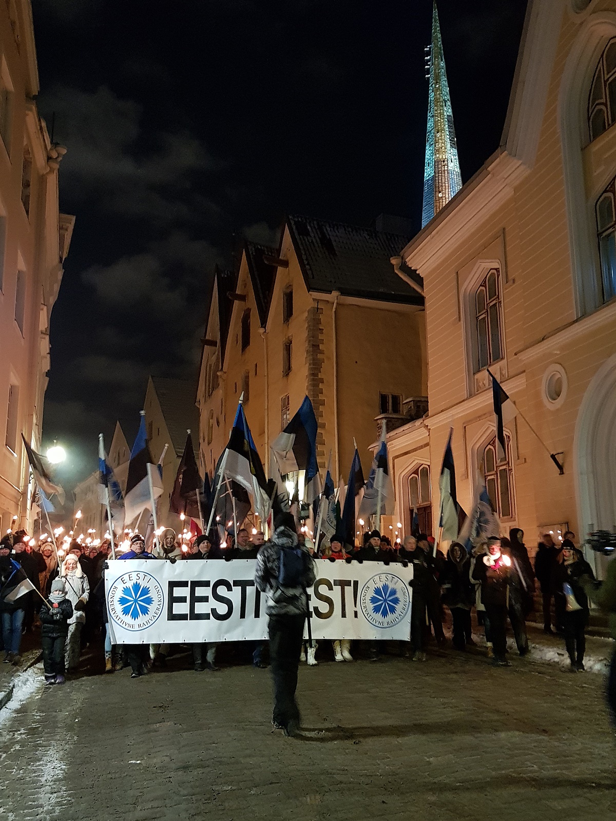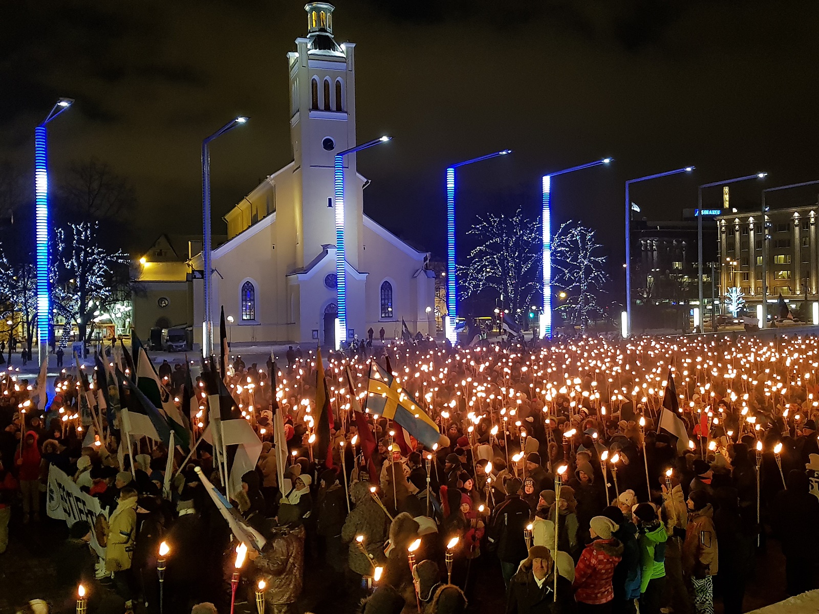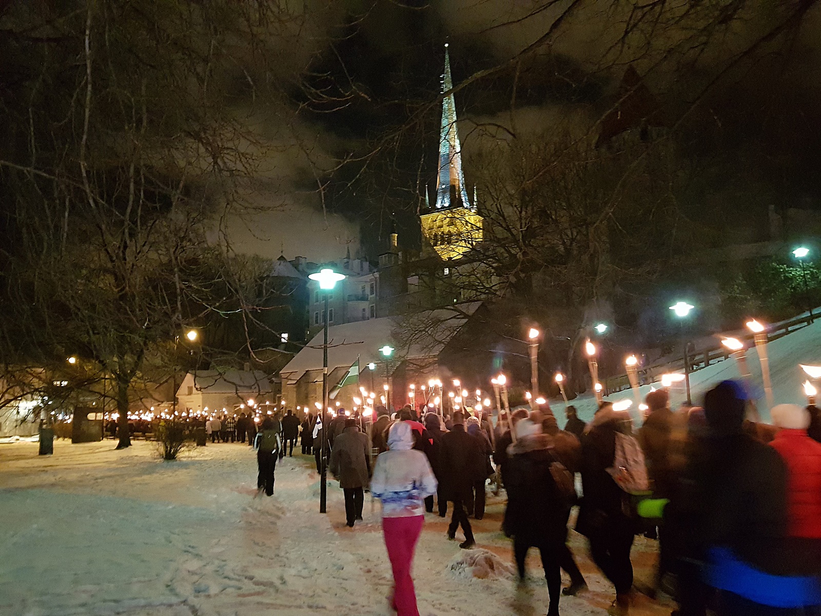 Eesti Vabariigi sajanda aastapäeva õhtul, mil Tartus toimus presidendi vastuvõtt Eesti koorekihile, kogunes Tallinnas Vabaduse väljakule hinnanguliselt kuni 5000 inimest, kes liikusid näpistavat pakast trotsides reipalt tõrvikurongkäigus ümber vanalinna.