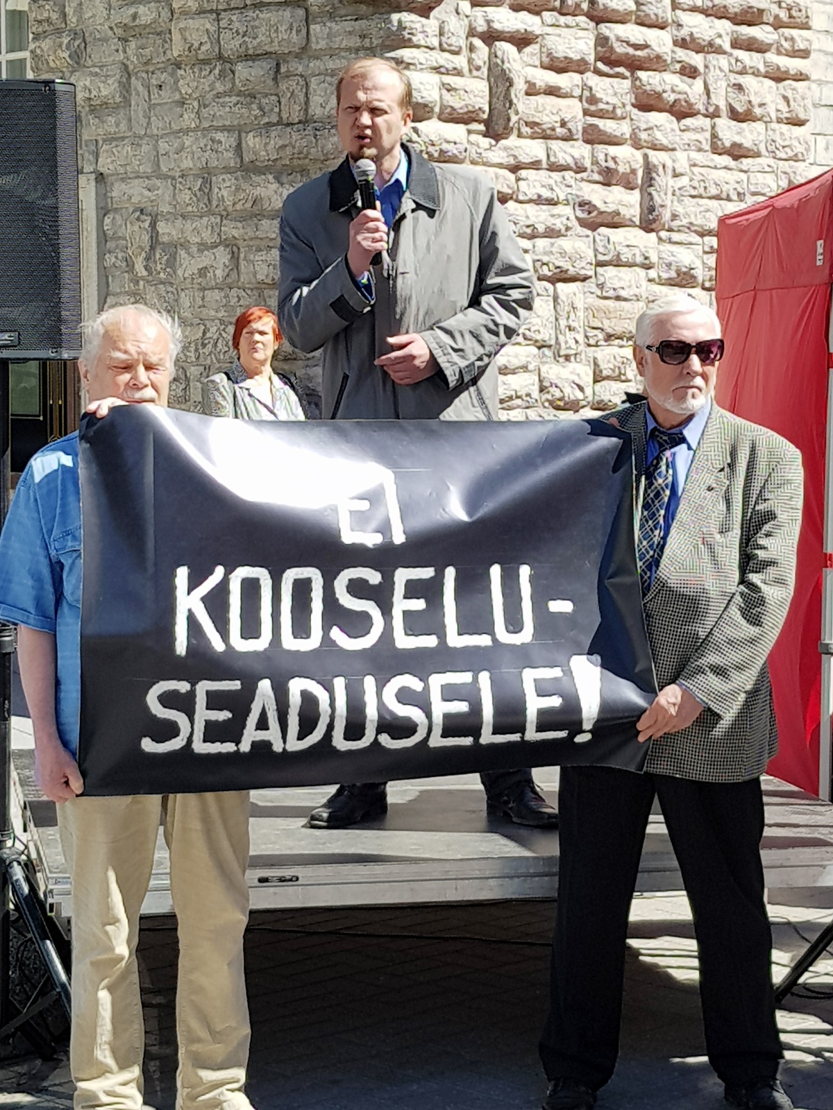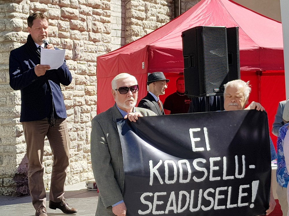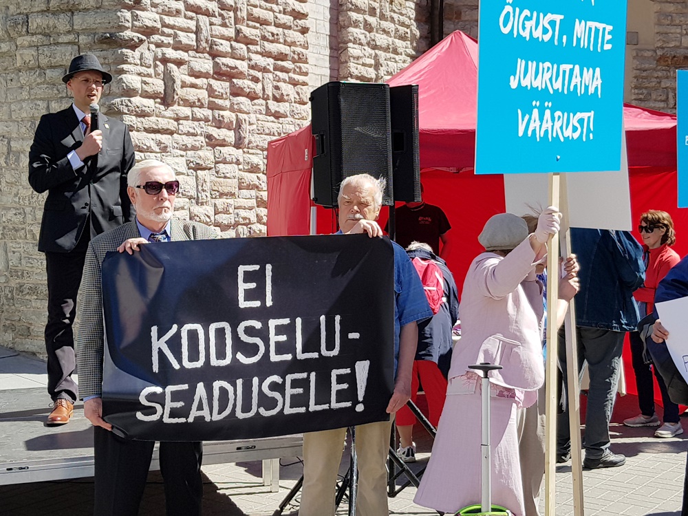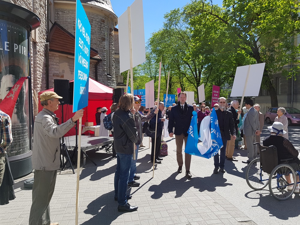 Meeleavaldusel võtsid kohtuliku aktivismi vastu ja loomuliku abielu kaitseks sõna Varro Vooglaid, Markus Järvi, Martin Helme, Anti Poolamets ja teised.