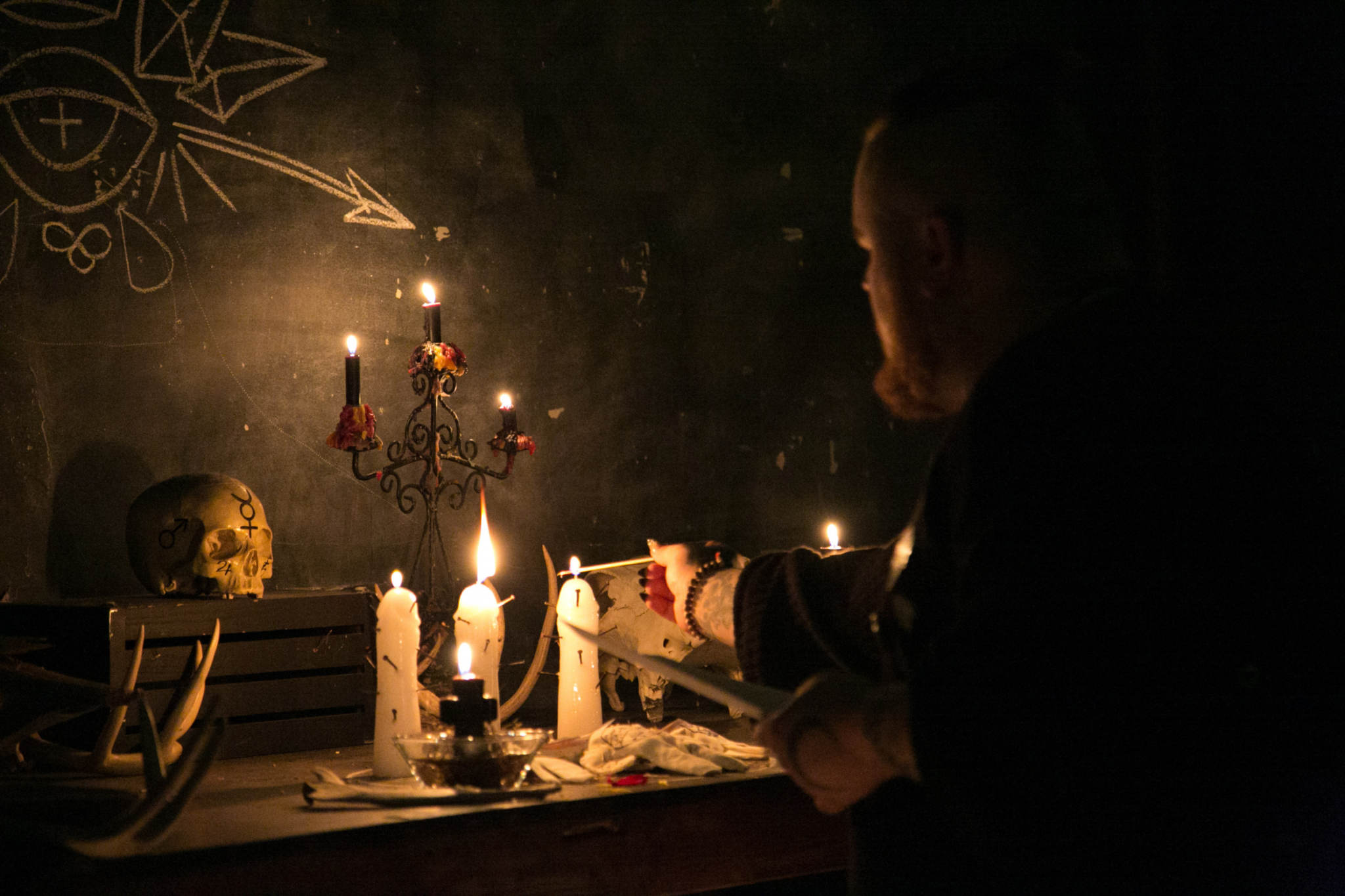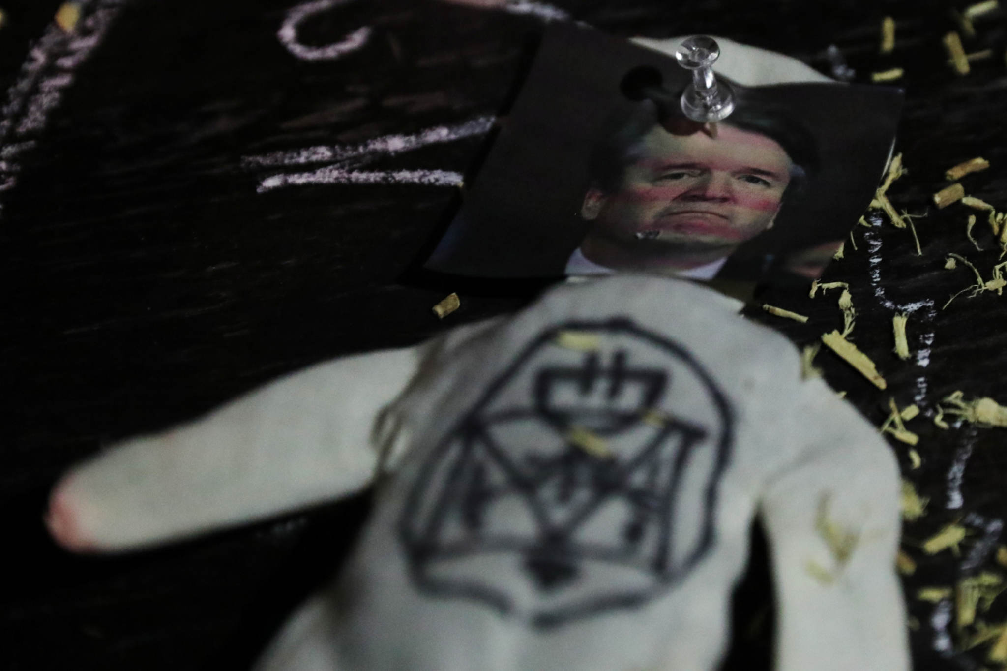 Kolmetunnine turvatud üritus, mida kanti üle ka internetis, leidis aset hämaras mustade kriiditahvlitega kaetud laoruumis, milles oli lisaks arvukatele toolidele puidust altar inimkolba, loomasarvede ja koljudega, erinevas suuruses mustade küünaldega ja valgete peenisekujuliste küünaldega, millesse olid torgatud naelad. Altari kohale oli kirjutatud ladina keeles Lavetur in nobis sanguis tyrranus, mis tähendab tõlkes "Me kümbleme türanni veres". Küünalde ette altarile, maagilise ringi sisse, olid asetatud voodoo-nukud, milledele olid kleebitud Kavanaugh', Trumpi ja McConneli näod.