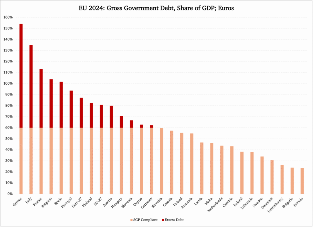 Minu mai kuus tehtud arvutuste kohaselt ulatuks täiendav kogunev võlg 653 miljardi euroni. See ei pruugi tunduda väga suur summa, arvestades et 2024. aastal oli 27 EL-i liikmesriigi konsolideeritud koguvõlg 14,5 triljonit eurot. Kuid probleem teravneb märgatavalt, kui vaadata nende koguvõla aastaseid juurdekasve.