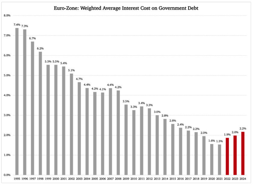 Pange tähele kolme viimast aastat, mil keskmine intressikulu on kasvanud. Loomulikult on see tõus toimunud äärmiselt madalalt tasemelt, kuid see ei tee elu lihtsamaks EL-i suure võlakoormaga liikmesriikide eelarvepoliitika kujundajatele. Vastupidi: madalad intressimäärad, millega nad on viimastel aastatel harjunud, on toiminud ahvatlusena, meelitades neid võtma veelgi rohkem võlgu, kui nad muidu oleksid teinud. Nad on kohandanud oma riigirahandust ja eelarvepoliitikat lähtudes eeldusest, et intressimäärad jäävad ka ettenähtavas tulevikus madalaks.