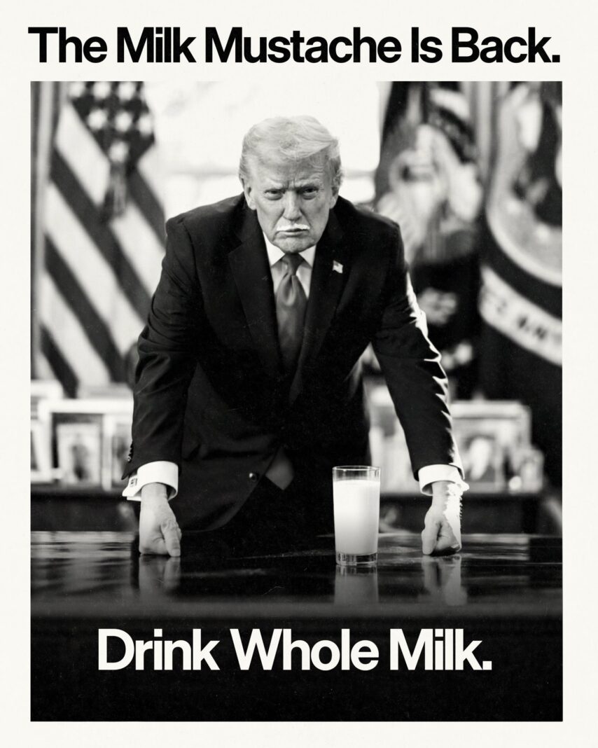 Ameerika Ühendriikide põllumajandusministeerium avaldas 12. jaanuaril reklaami, millel on kujutatud "piimavuntsidega" president Donald Trumpi ja kutsutakse üle jooma täispiima.